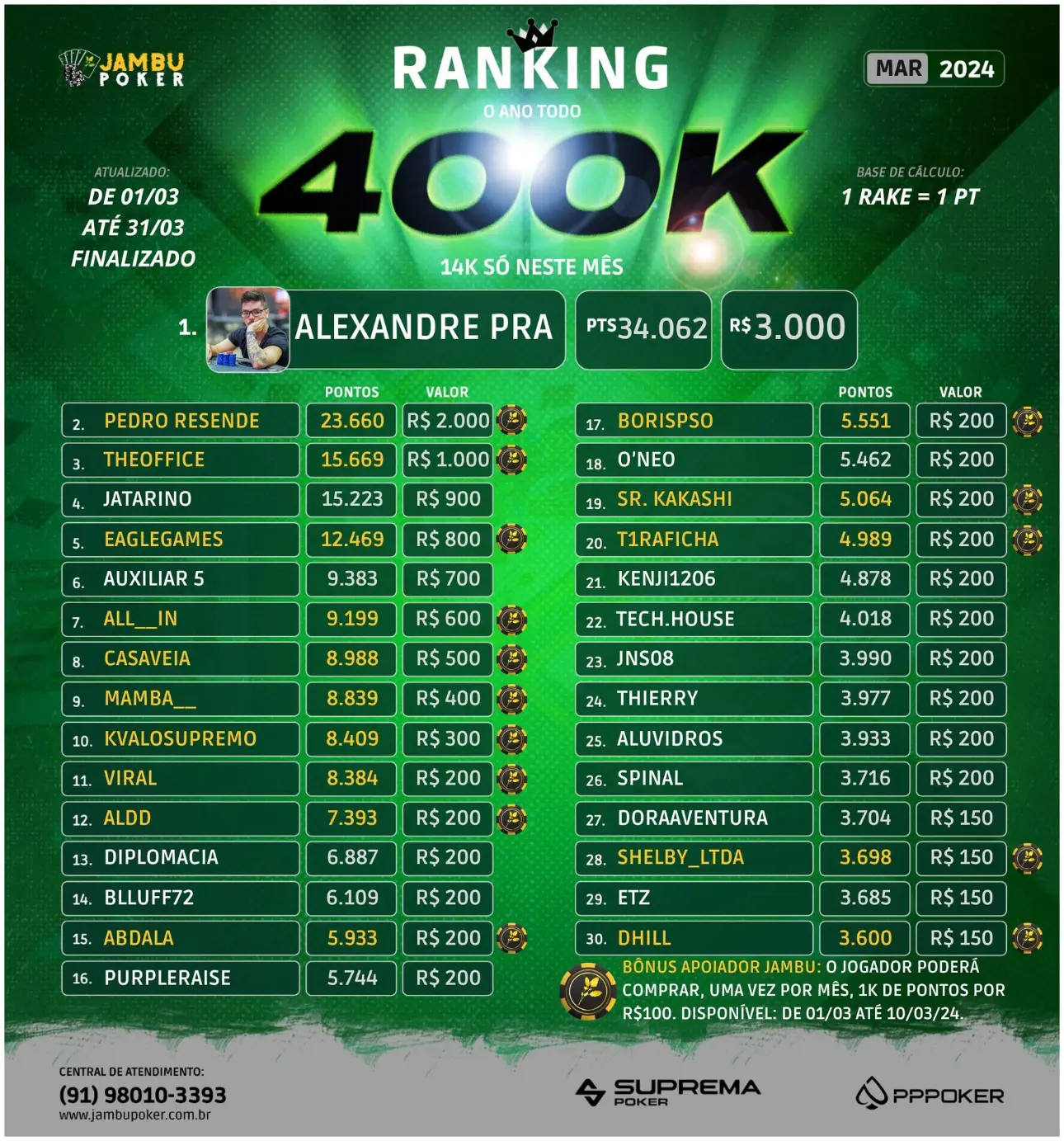 Nosso Ranking anual tem peso pra cada mês!